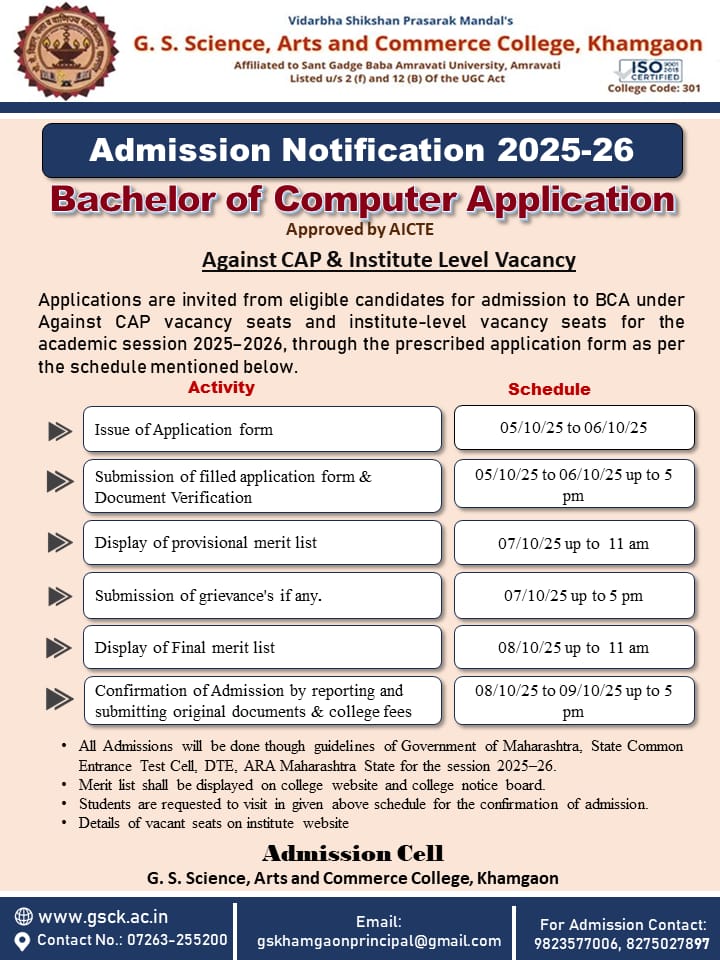 COURSESMore than 25 courses for H.S.C., Graduation, Post-Graduation, Research, Diploma & Short Term Courses with excellent infrastructure.